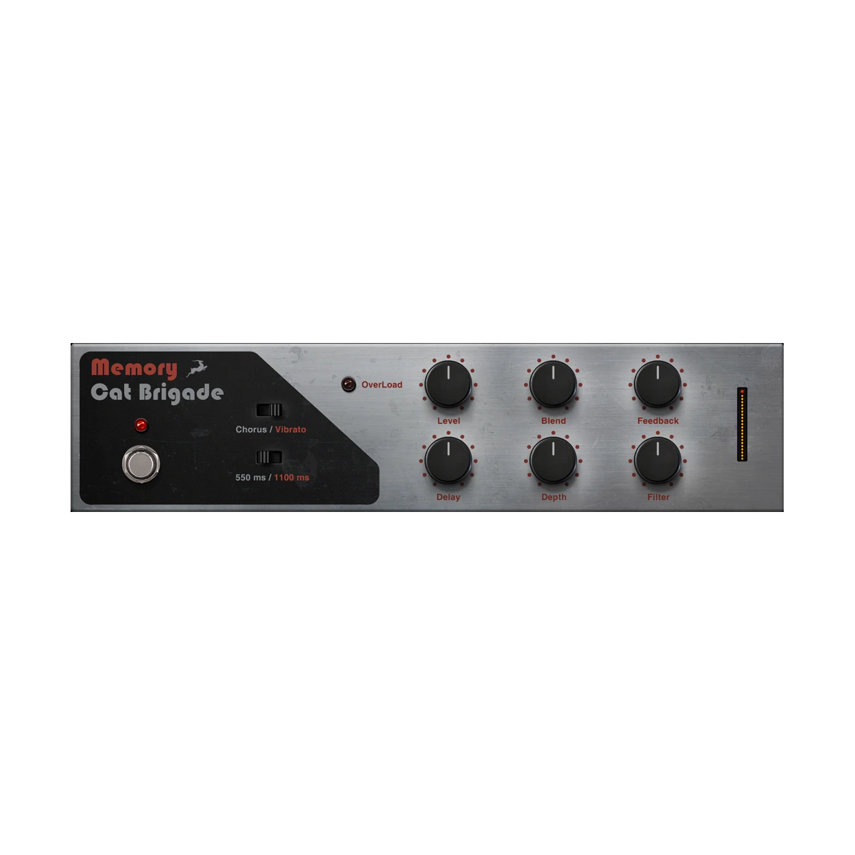-10%As all of our creations, we took it upon ourselves to reproduce the most faithful software emulation of the Deluxe Memory Man ever made. We measured and recreated every single component of the circuit and created the Memory Cat Brigade AFX using the original schematic for the Deluxe Memory Man. In addition to the accurate recreation of the behavior of all original parameters we also added a few extra features unique only to our AFX such as a maximum delay time of up to 1100 ms and a Filter knob for even darker echos.
