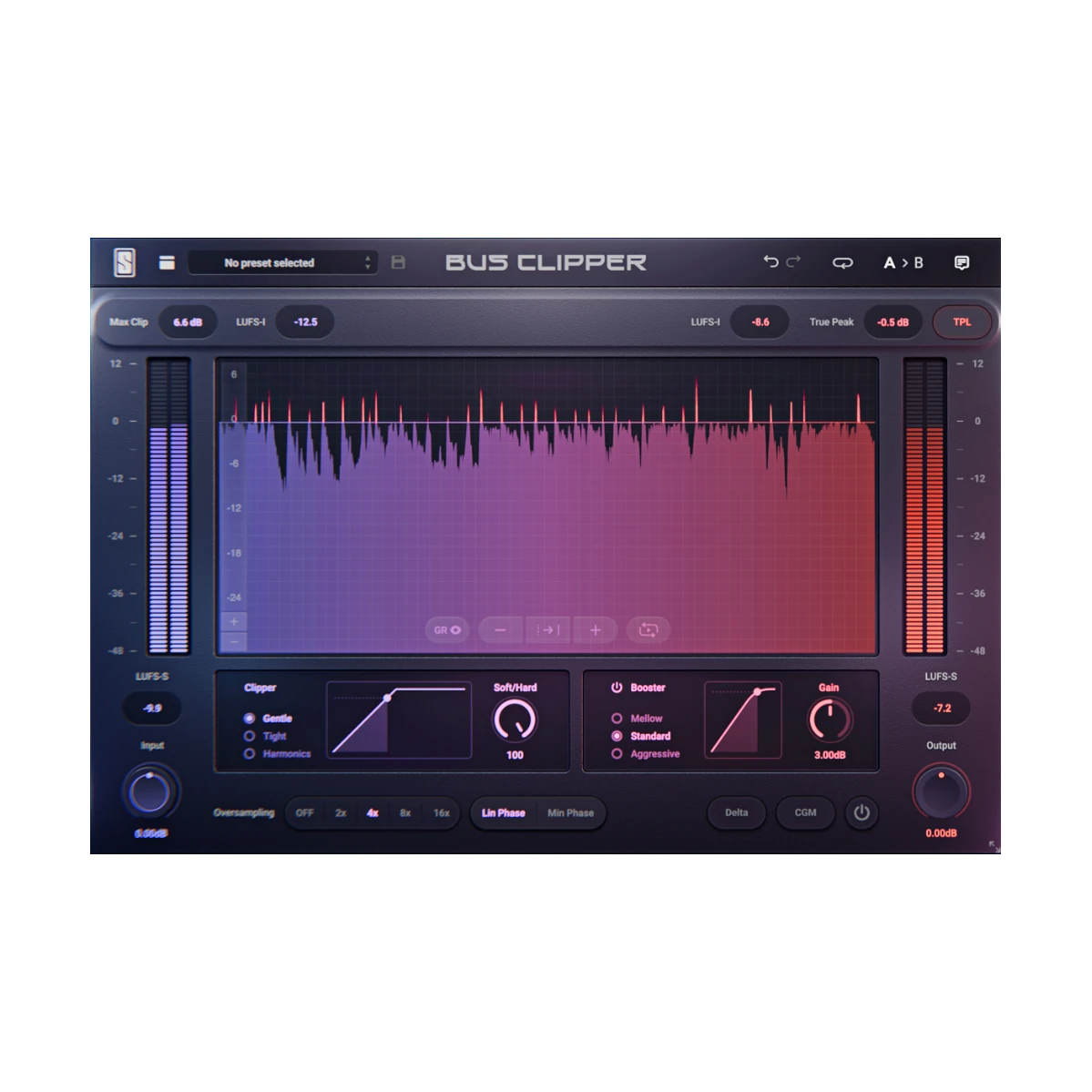 Slate Digital Bus Clipper is a professional, two-stage clipping and loudness processor engineered specifically for the mastering chain. It delivers louder, cleaner mixes by shaving imperceptible transient spikes to reclaim digital headroom, then employing advanced waveshaping to increase perceived loudness without raising peak levels or introducing unwanted artifacts. Designed for engineers who demand precision, Bus Clipper combines sample-accurate clipping, smart oversampling, and transparent True Peak limiting within a single, intuitive interface.
