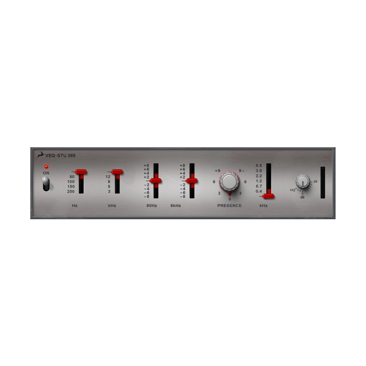 -10%The VEQ-STU 089 is a semi-parametric EQ with 2 variable filters and a Presence knob with its own frequency dial. It offers quite a choice, no matter if you are going for frequency-specific equalizing or broader tone shaping.