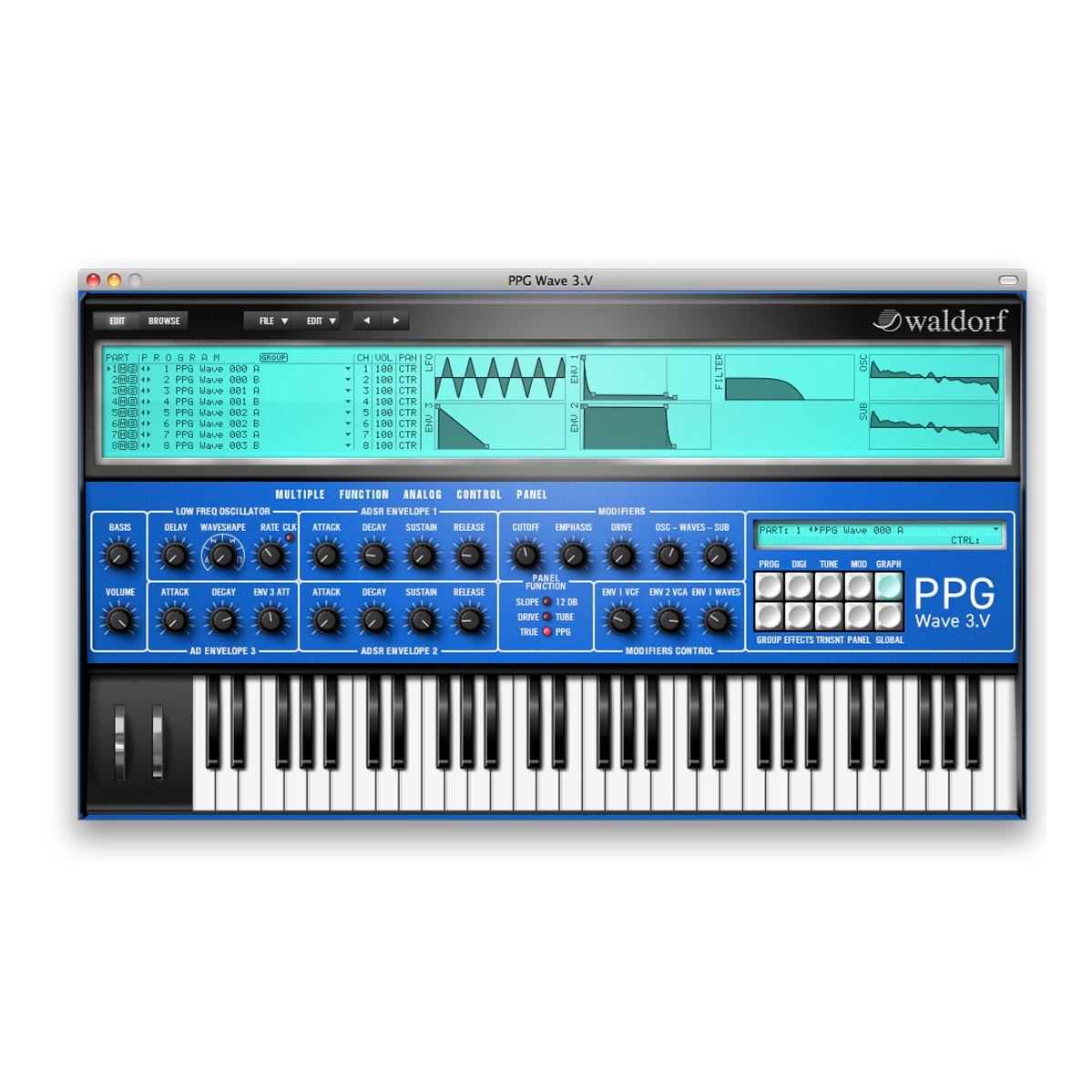 Waldorf PPG Wave 3.V is the reincarnation of the legendary PPG Wave Synthesizer, which no doubt is considered one of the most respected high-end synthesizers of the 80s. Developed by Wolfgang Palm, this instrument is featured on countless records, and it inspired a whole generation of producers, composers and listeners. While back then it was your choice to spent your money either for a vehicle or the PPG, the new PPG Wave 3.V renders this breathtaking sonic character very affordable, comfortably to use for every VST or AU Host.